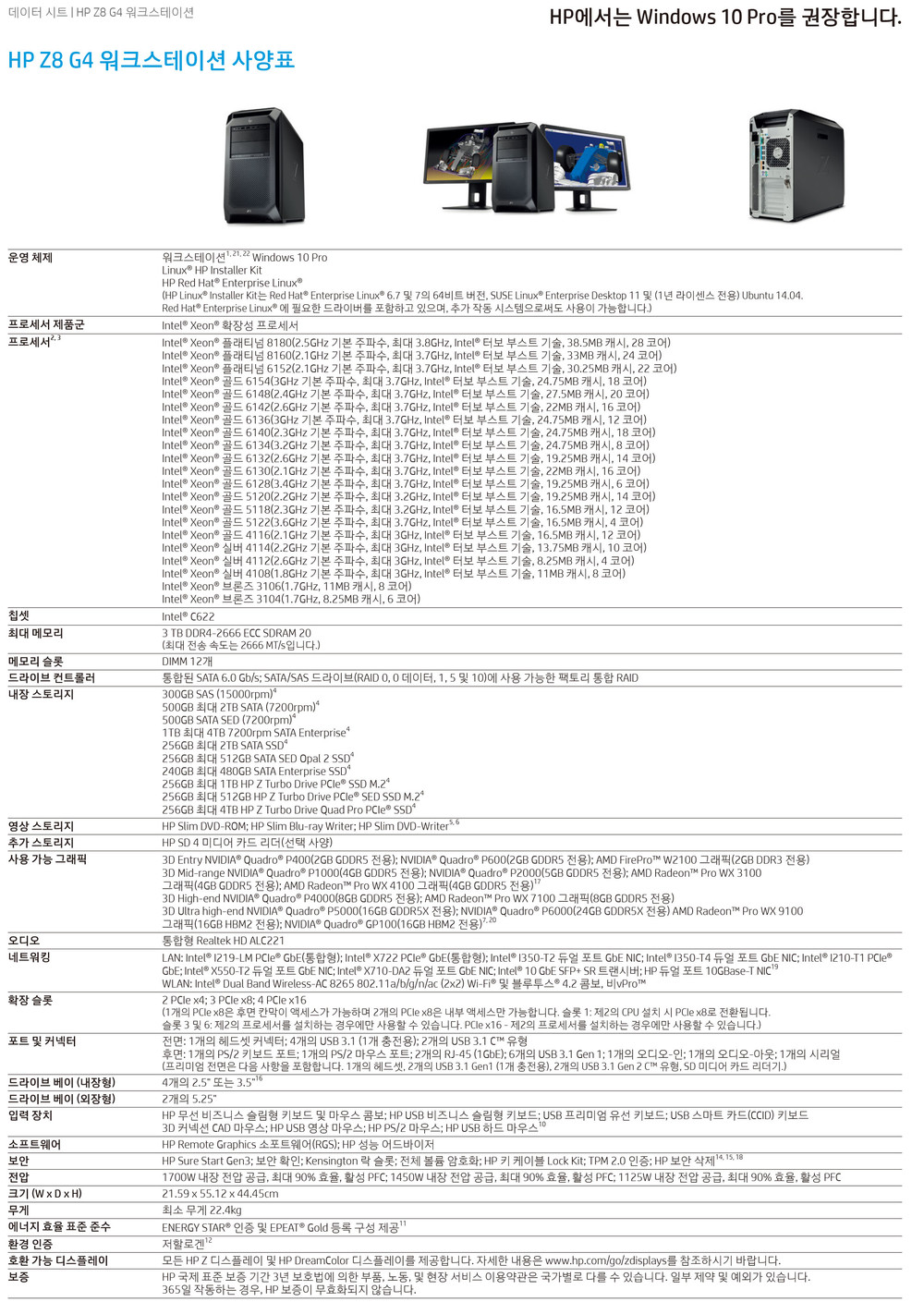 솔리드웍스 전용_HP Workstation - Z8 G4 Datasheet_V2