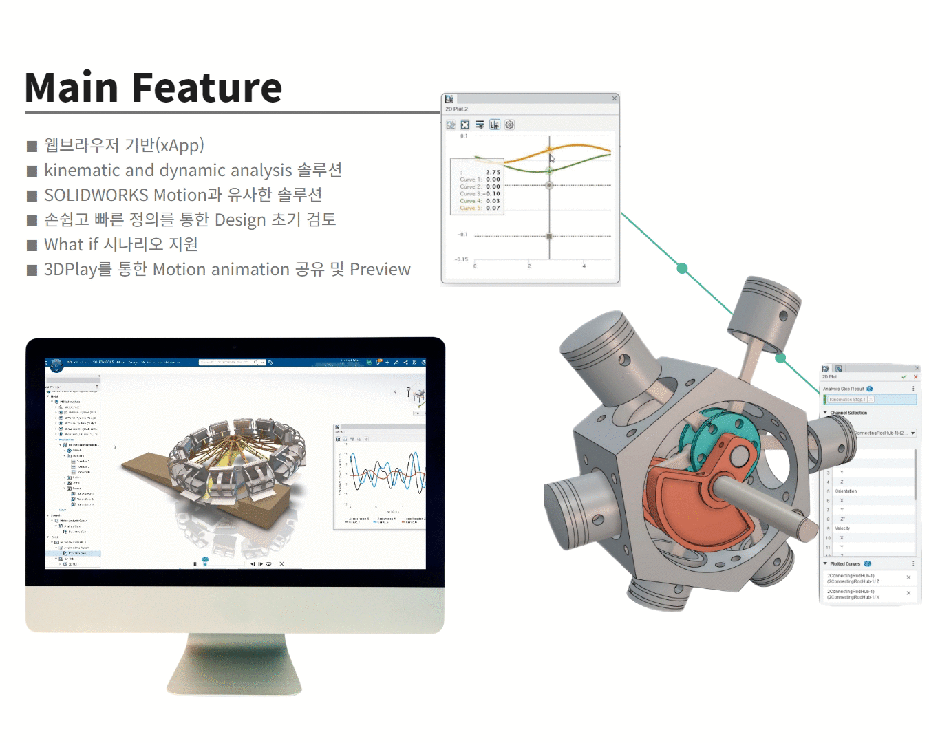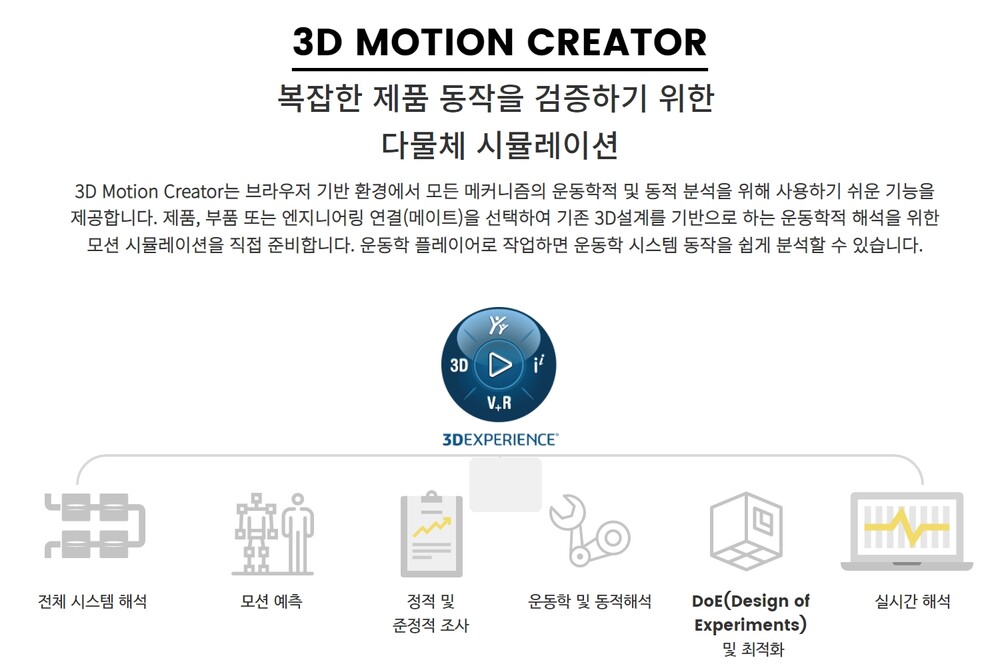3D Motion Creator는 웹 브라우저 설계 기반에서 구동되는 SIMPACK 다물체 시뮬레이션 기술입니다.