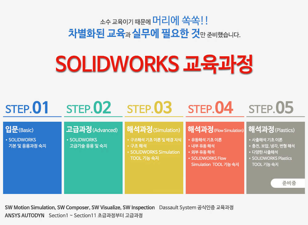 교재개요 : 본 교재는 총 3권으로 SOLIDWORKS Essentials(기본),Drawings(도면),Advanced Topics(고급)구성되어 있습니다. 솔리드웍스 기본에서부터 고급기능까지 원스톱으로 학습하고자 하는 분들에게 적합한 교재입니다.