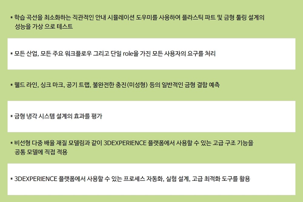 시뮬레이션하여 플라스틱 파트 및 금형 설계를 검증하고 최적화