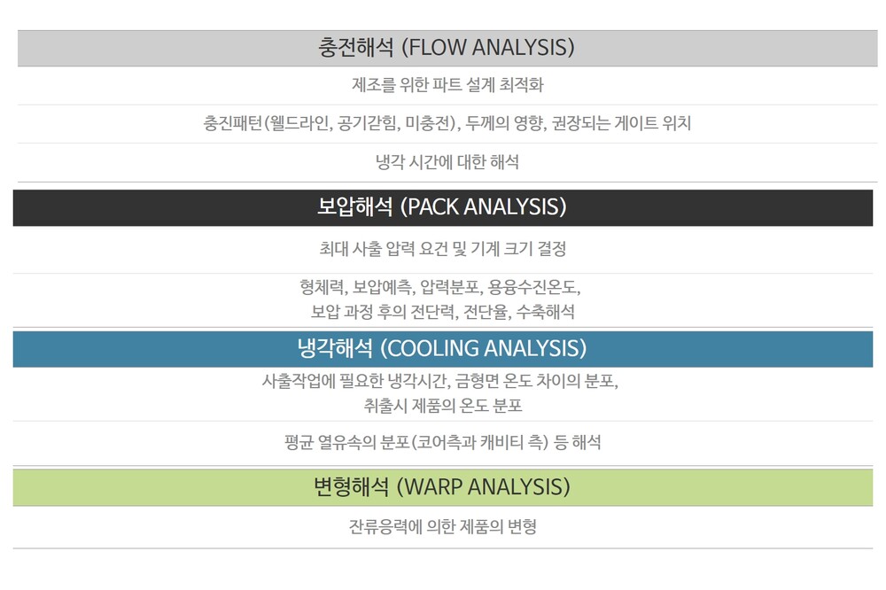 ▶ 필요한 사출 압력 및 공구 클램핑력을 예측하여 적절한 사출 성형기를 선택할 수 있습니다.